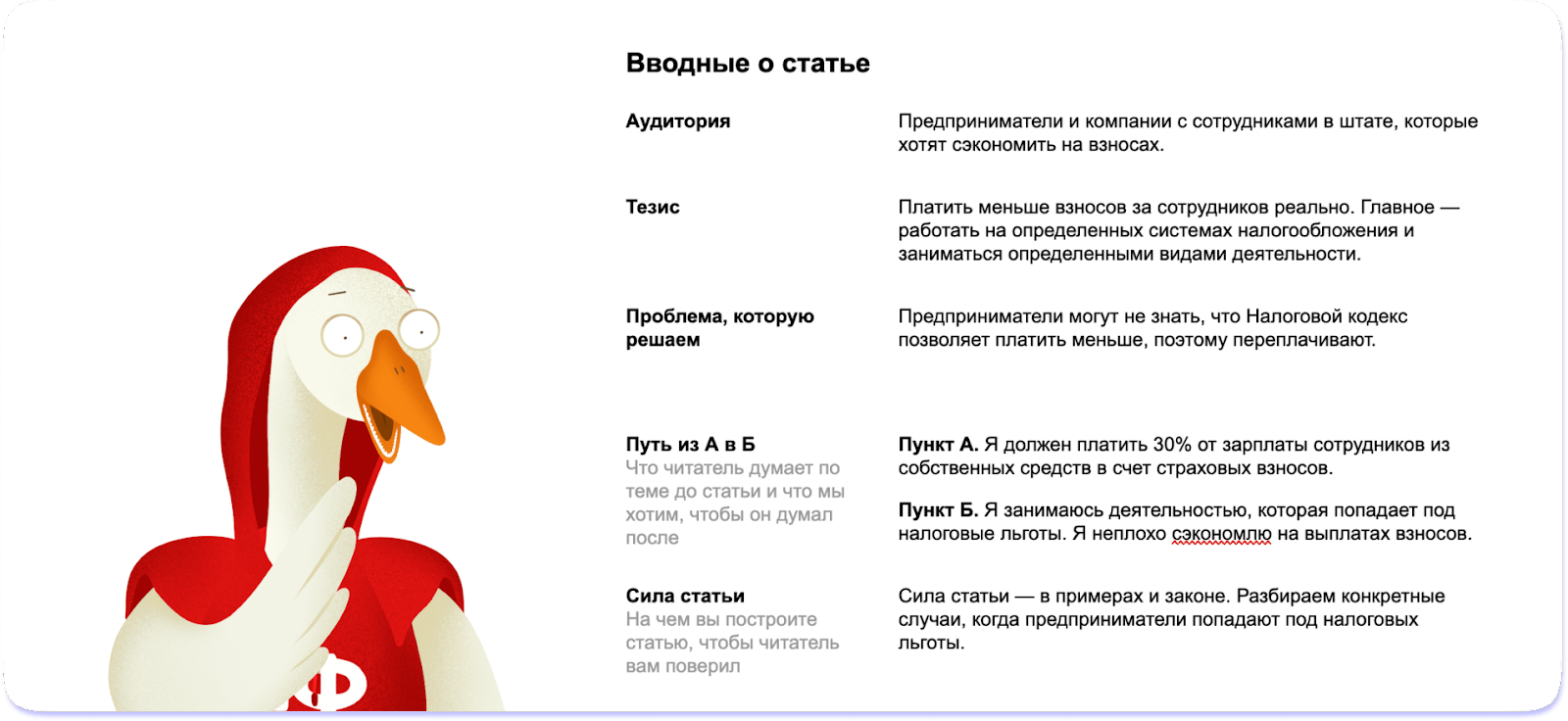 Это техзадание, которое я собирала для статьи о взносах ИП