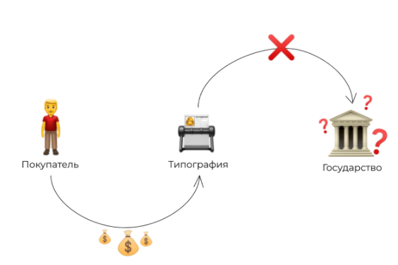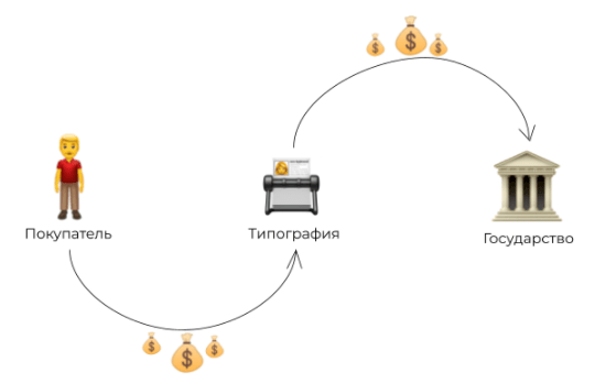 Компания получает от покупателя оплату: за свои услуги + НДС, но НДС не оставляет себе, а отправляет государству. Получается, типография — это перевалочный пункт между покупателем и государством.