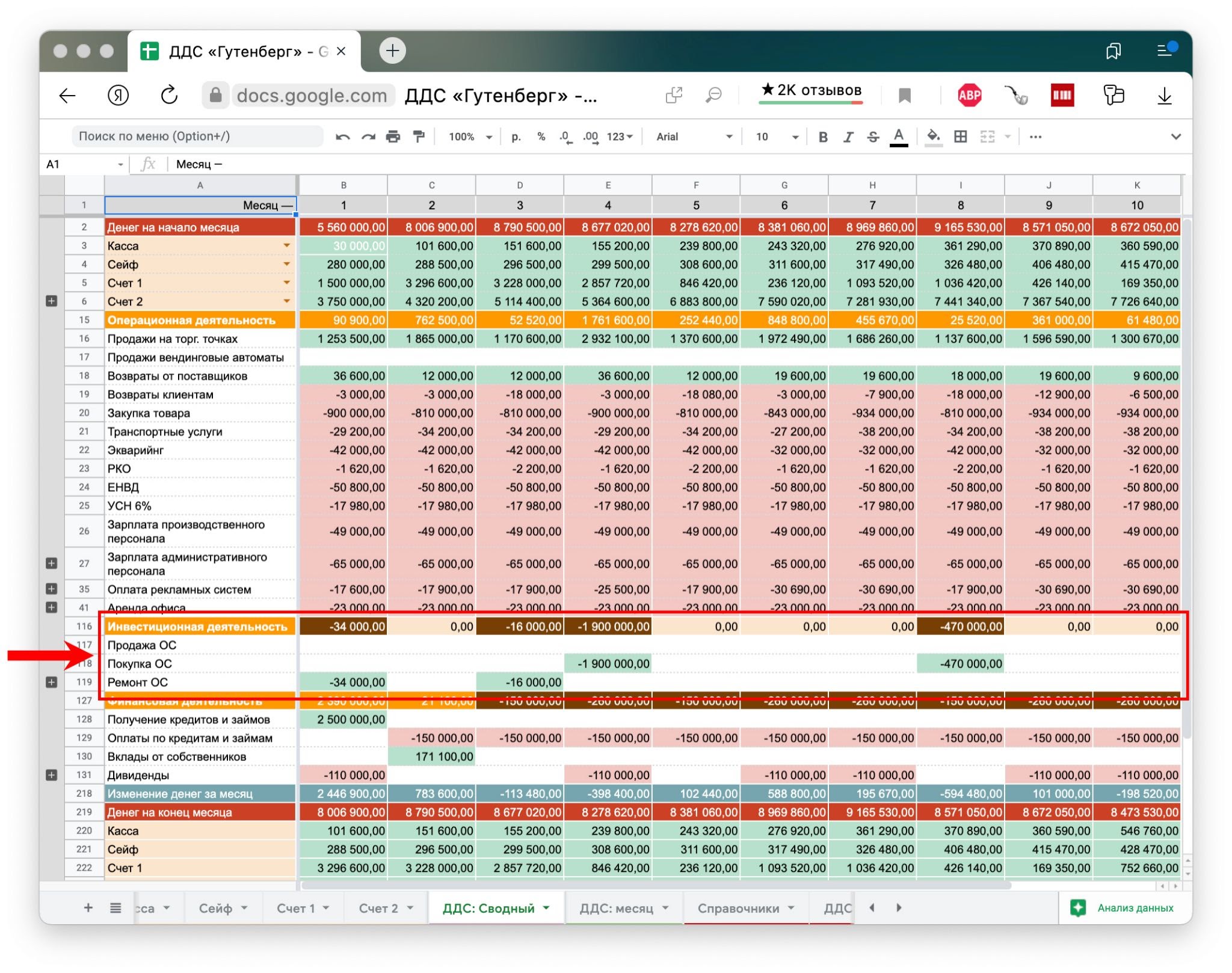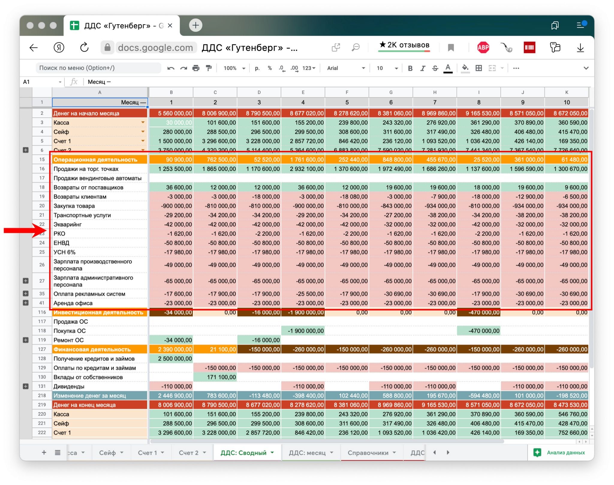 У «Гутенберга» были постоянные кассовые разрывы — это проблема на уровне денег, поэтому я начала работу с отчета о движении денежных средств, ДДС. Он показывает, сколько денег и откуда приходит в компанию и сколько и на что уходит.