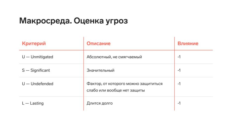 Второй метод (рассмотрение факторов с точки зрения возможностей и угроз):