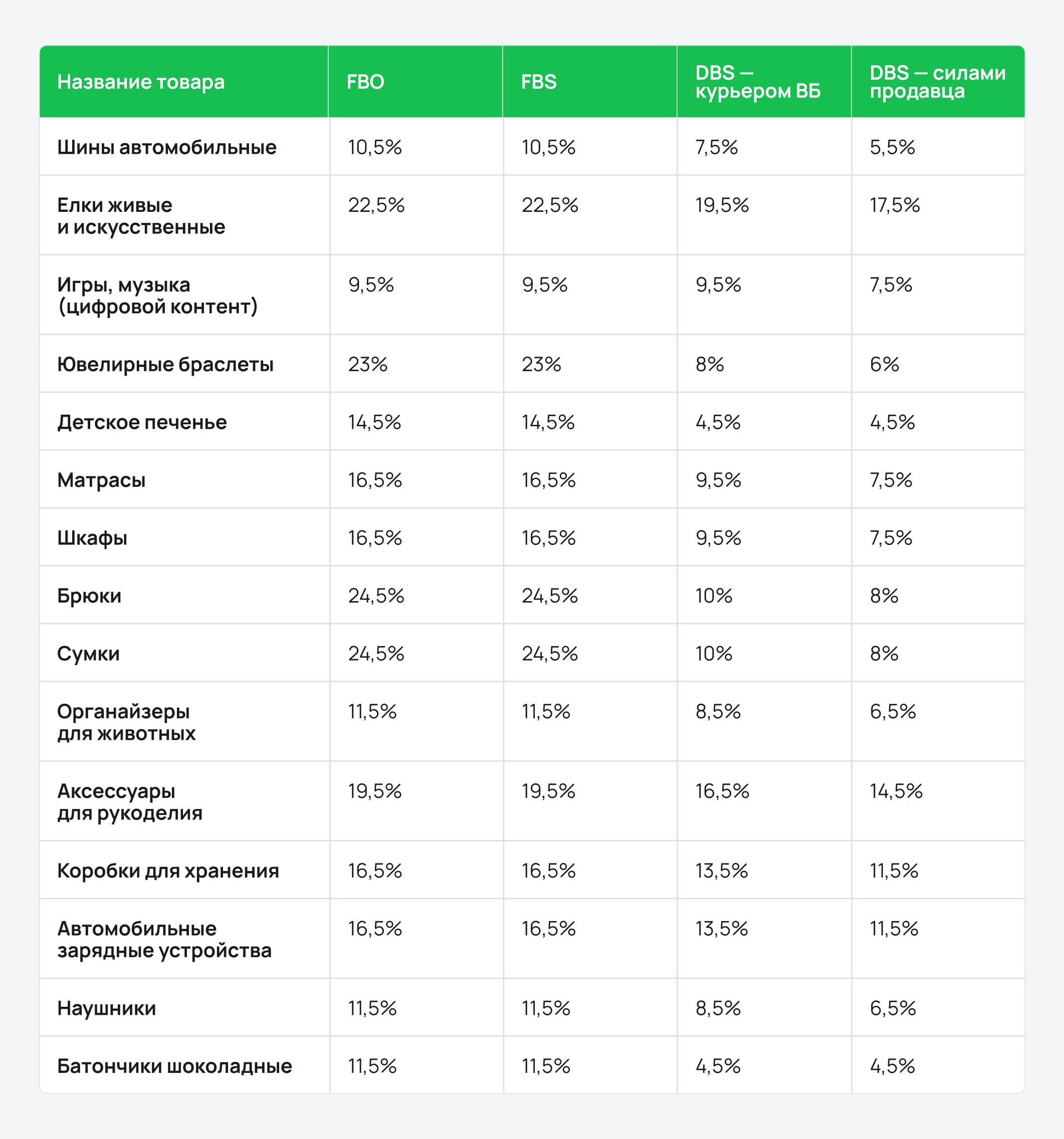 1. Когда селлер полностью передает задачи по сбору и транспортировке товара маркетплейсу или доставляет товары на склад самостоятельно — размер комиссий колеблется от 9,5% до 24,5% в зависимости от категории товара. Например, за продажу видеокурсов, абонементов в фитнес-клуб и музыки на Wildberries взимается 9,5%. В то время как за зонты, перчатки, обувь и блузки ставка возрастает до 24,5%.