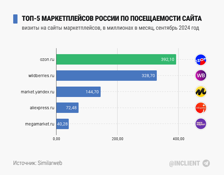 Самыми популярными по статистике считаются WB и Ozon. По данным агентства Data Insight на 2024 год, доля Wildberries и Ozon от всех онлайн-заказов составила 89%. Далее по рейтингу идут Яндекс Маркет и Мегамаркет от Сбера. Эти площадки выбирают большинство селлеров и покупателей.