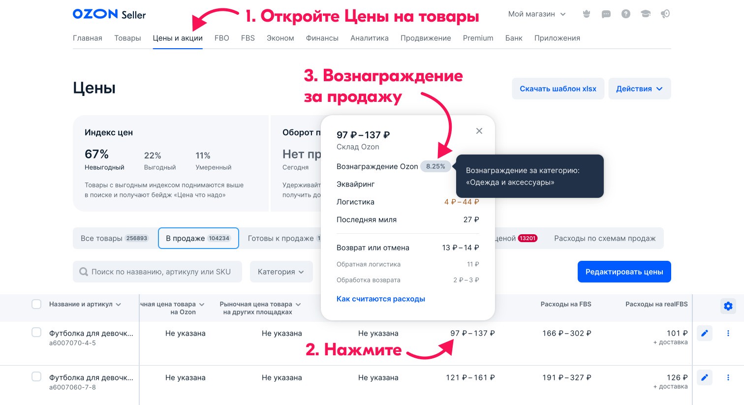 Подробнее то, как рассчитывается комиссия на Ozon, можно посмотреть в личном кабинете селлера