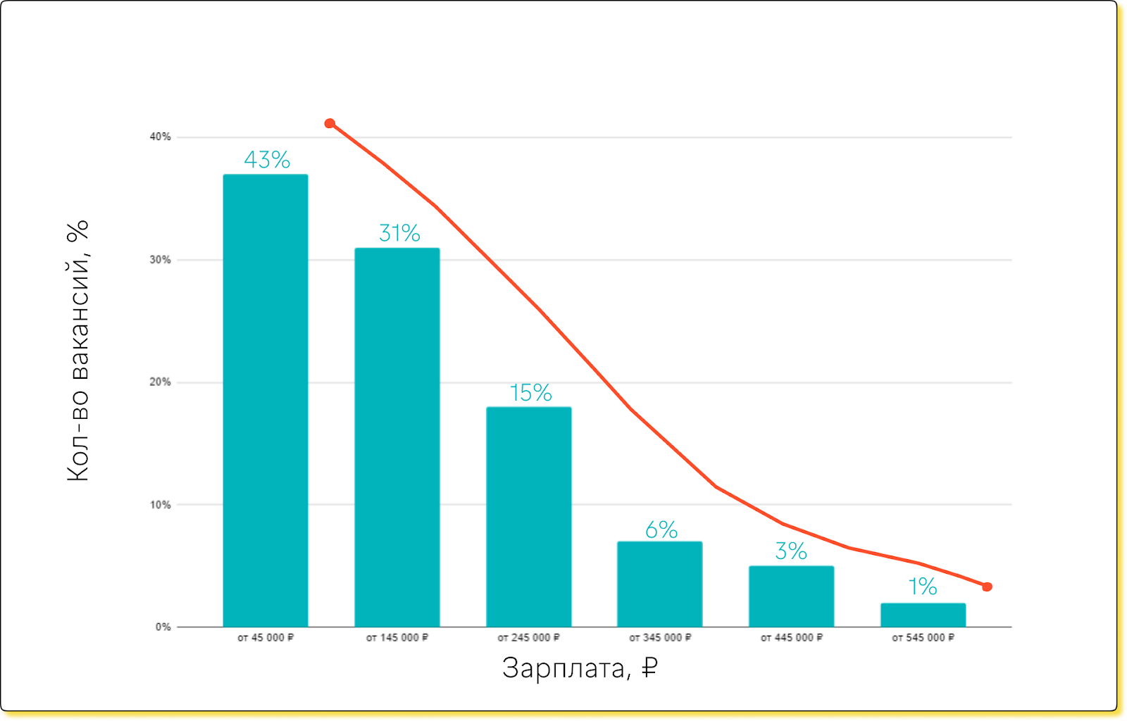 В вакансиях указывают зарплату «от»: от 45 000 ₽, от 145 000 ₽, от 245 000 ₽, поэтому 545 000 ₽ — это еще не максимальная оплата работы коммерческого директора