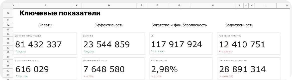 Что это на практике. Еженедельный дашборд с данными из 1С, CRM и банковских выписок. Главное — чтобы обновлялся автоматически и был понятен без расшифровки.