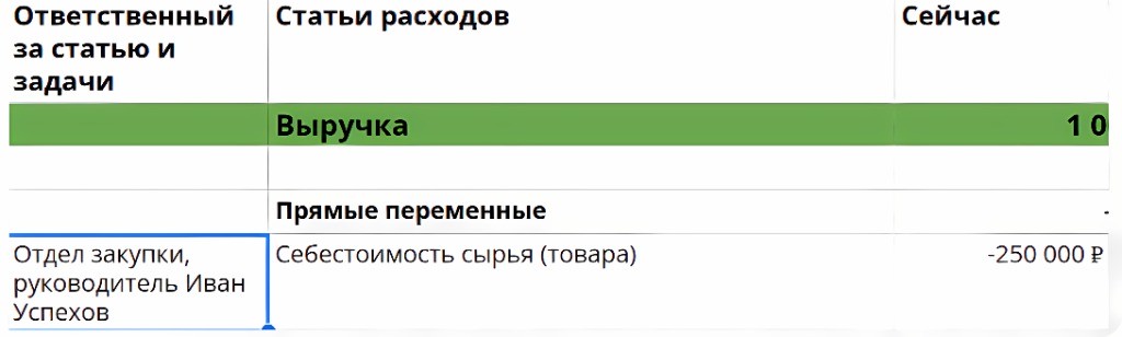 ↑↑↑ Определяем ответственного за статью расхода. Это может быть отдел или конкретный человек, которому будет поручено выполнить задачу