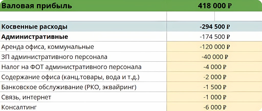 Косвенное влияние, где затраты обеспечивают работу компании. Например, бухгалтер или ИТ-инфраструктура — без них нельзя, но они не генерируют выручку сами.