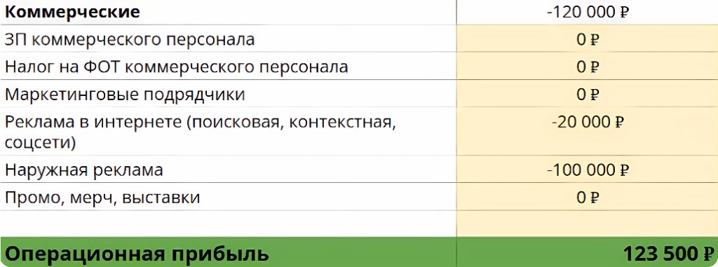 ↑↑↑ Пример коммерческих расходов на продвижение компании
