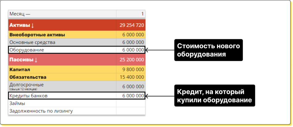 Долговые обязательства — это деньги, за счет которых бизнес формирует новые активы. Например, когда бизнес покупает станок в кредит за 6 млн ₽, то получает долговое обязательство в виде кредита перед банком и новый актив: