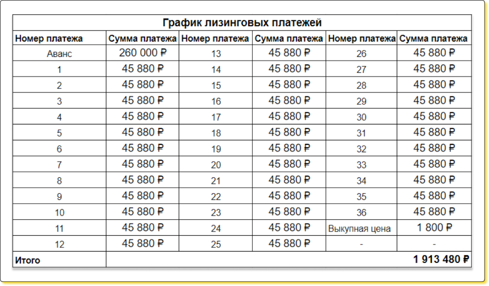 Для примера, так всё это выглядит на графике лизинговых платежей ↓