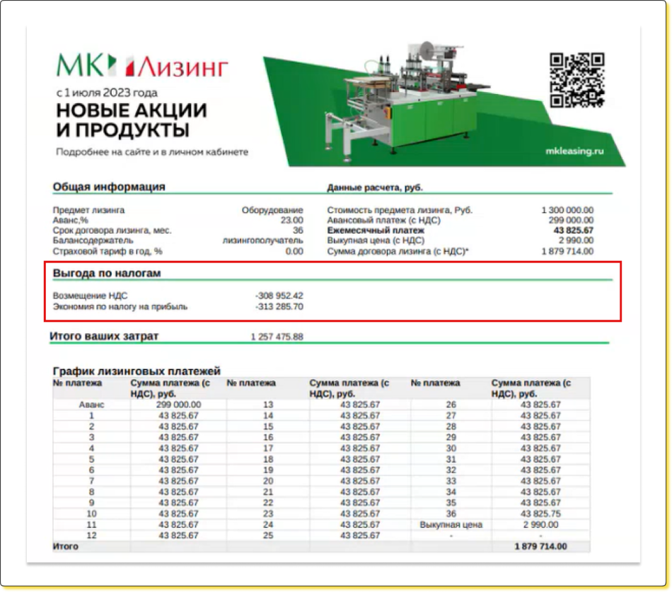 ↑ В коммерческих предложениях лизинговые компании указывают не только сумму ежемесячных платежей, но и выгоду по налогам