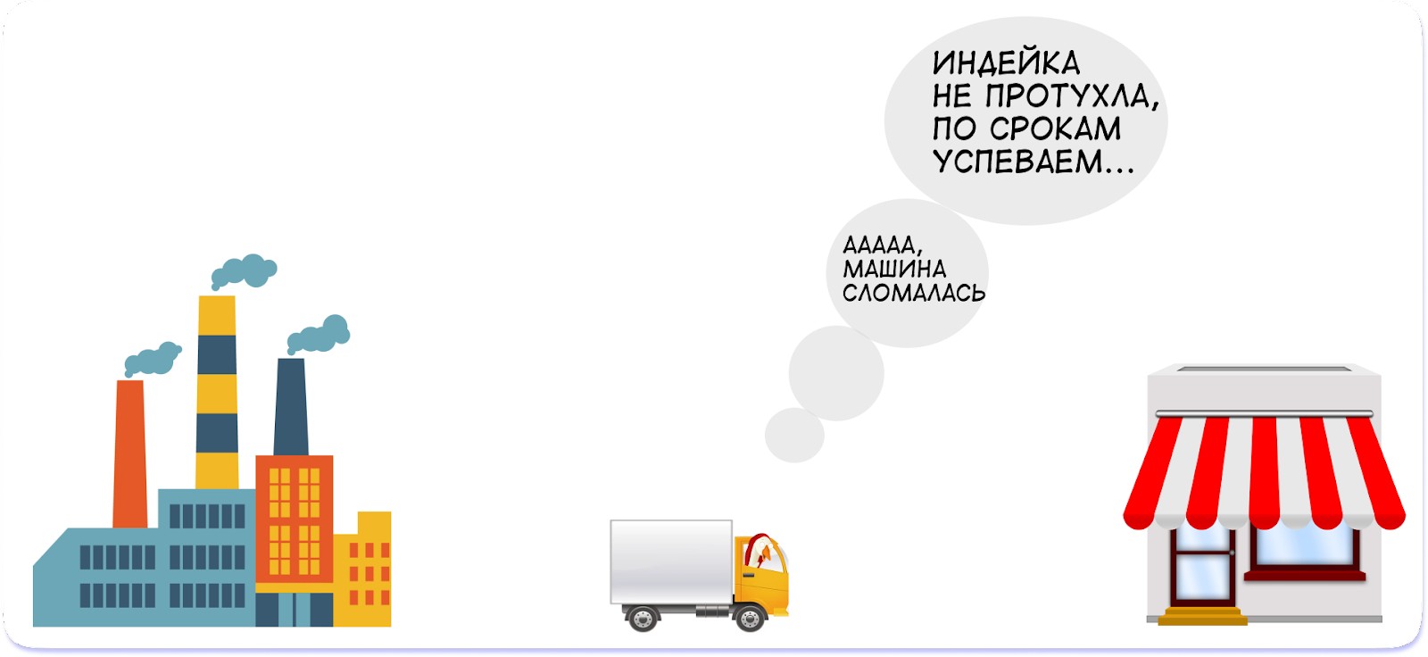 А чтобы производство сработало как надо, нужно привезти сырье в срок. При этом товар важно также изготовить в срок, а еще достаточного качества и не создавая запасов, потому что склад — это расходы.