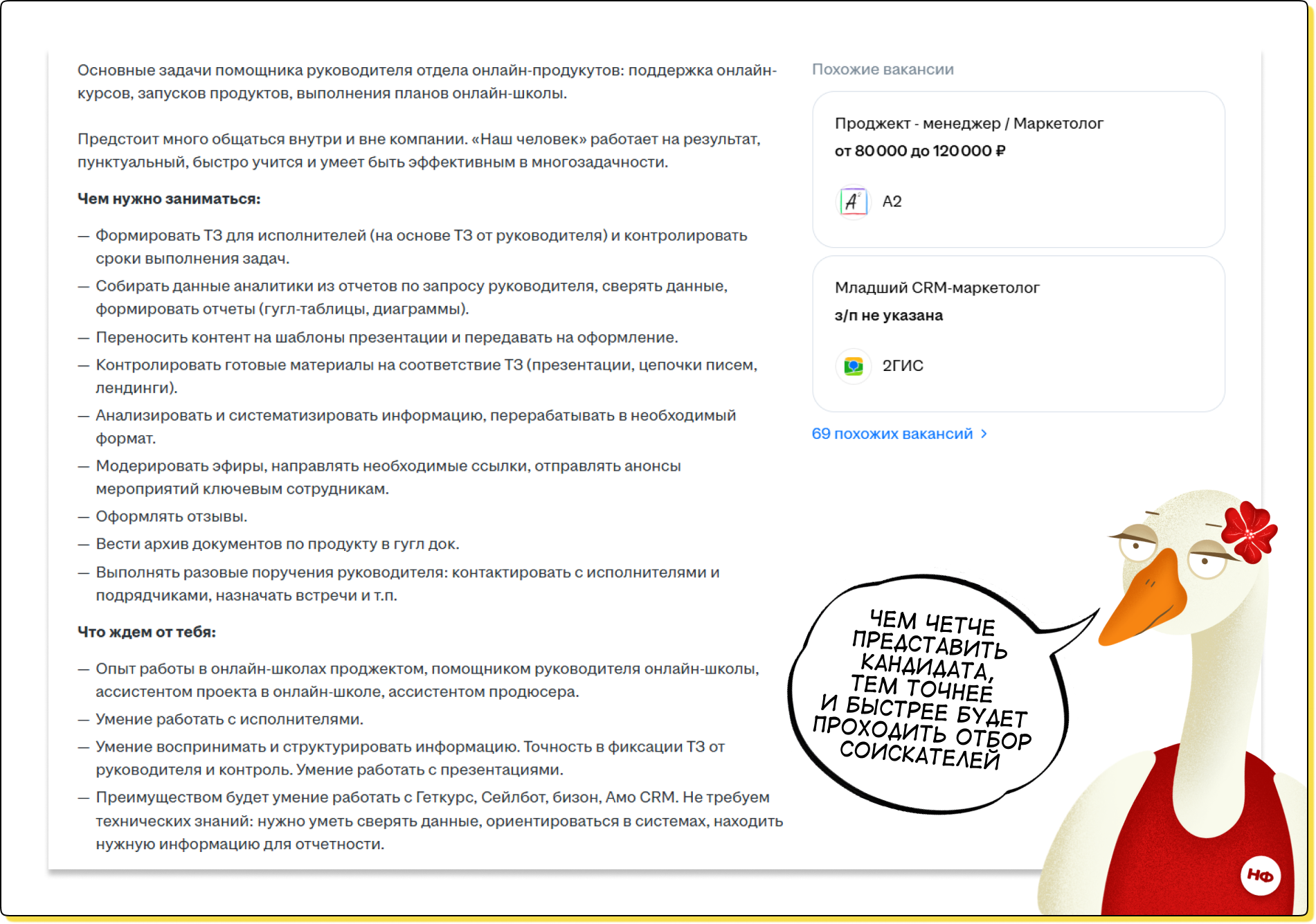 Вот как выглядела вакансия младшего проджект-менеджера, которого Нескучные искали для запуска и поддержки направления онлайн-обучения ↓
