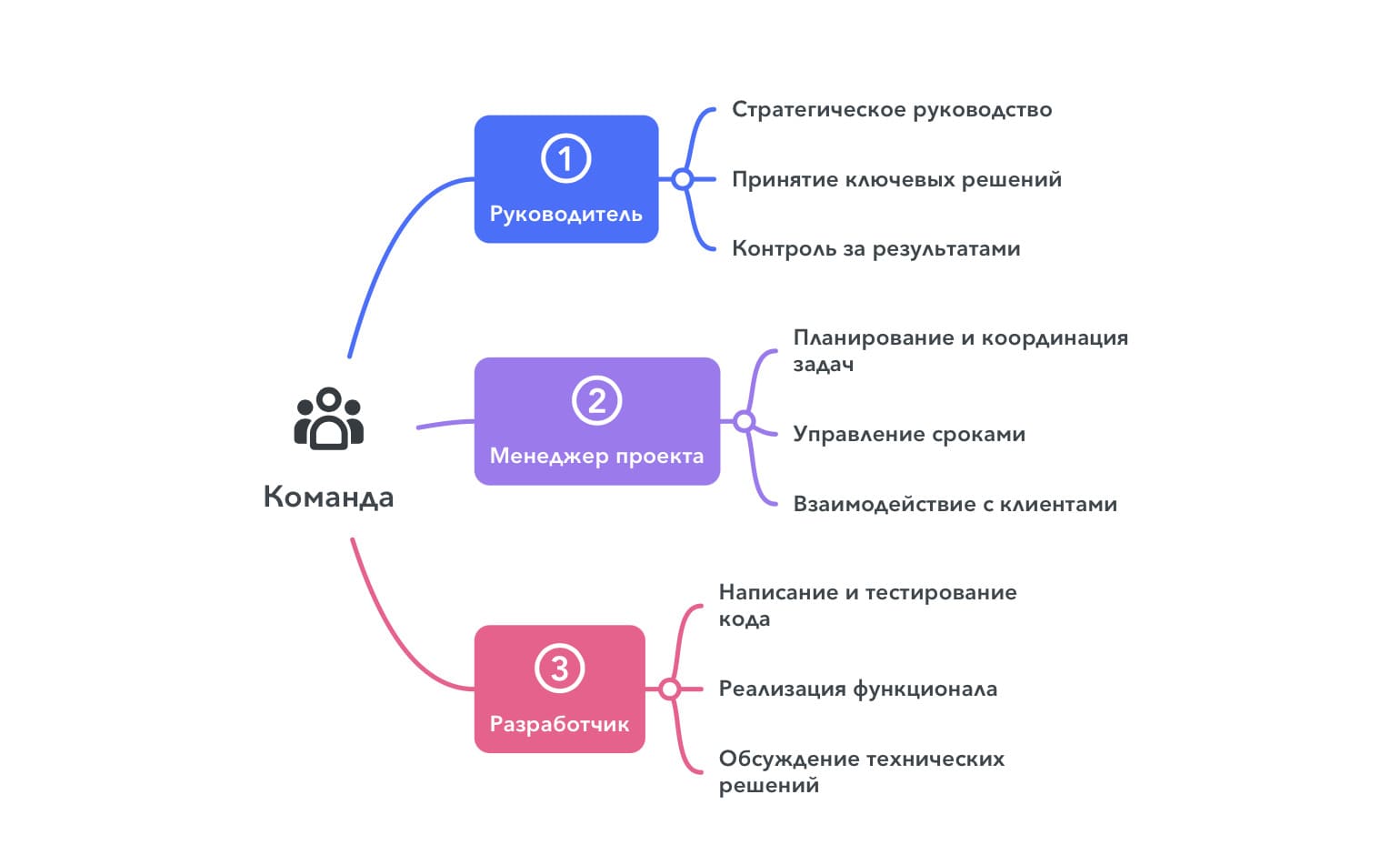 → Управление командой. С помощью ментальной карты можно распределить роли в команде, отслеживать компетенции сотрудников и планировать дальнейшее обучение. Это помогает организовать процесс так, чтобы каждый знал свои задачи и зоны ответственности.