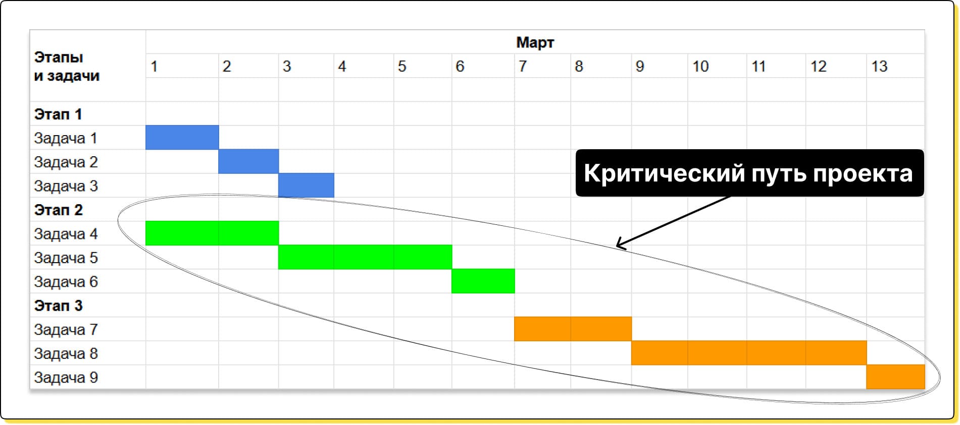 Метод критического пути — способ управления проектами, который помогает находить критические пути и контролировать сроки сдачи проекта.