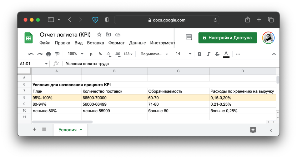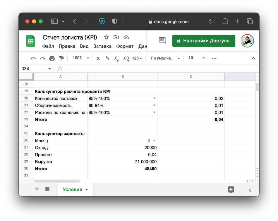 В итоге показатели суммируются в процент от объема продаж, который логист получает деньгами. Для расчета разработали отдельную таблицу, что-то вроде калькулятора: