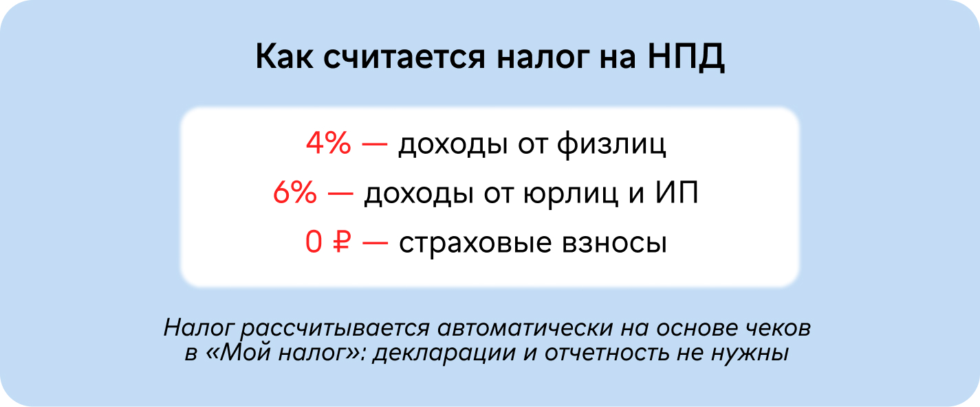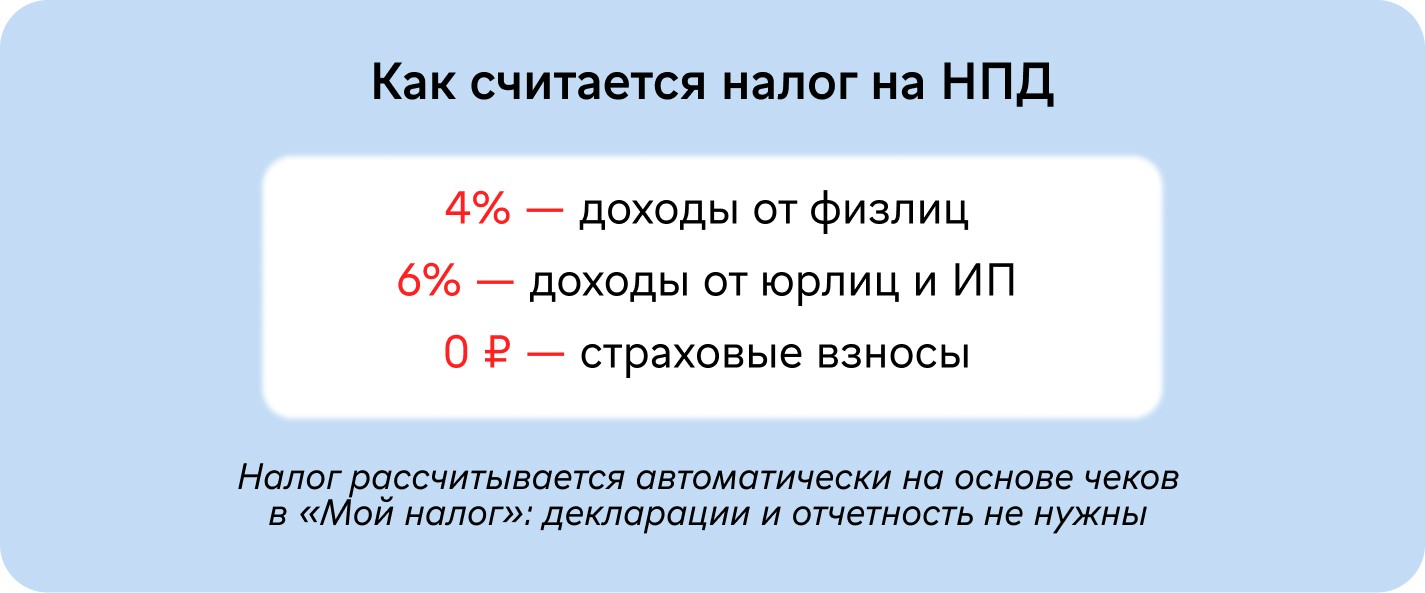 При этом есть и реальные послабления: по доходам, облагаемым НПД, ИП не платит НДФЛ и не платит страховые взносы. Это одна из причин, почему ИП на НПД так привлекателен для малого бизнеса.