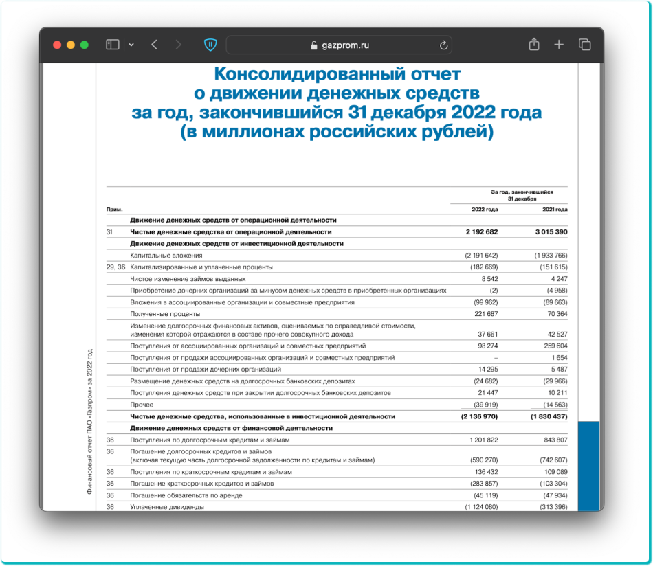 Вот как выглядит финансовая отчетность Газпрома за 2022 год по МСФО: