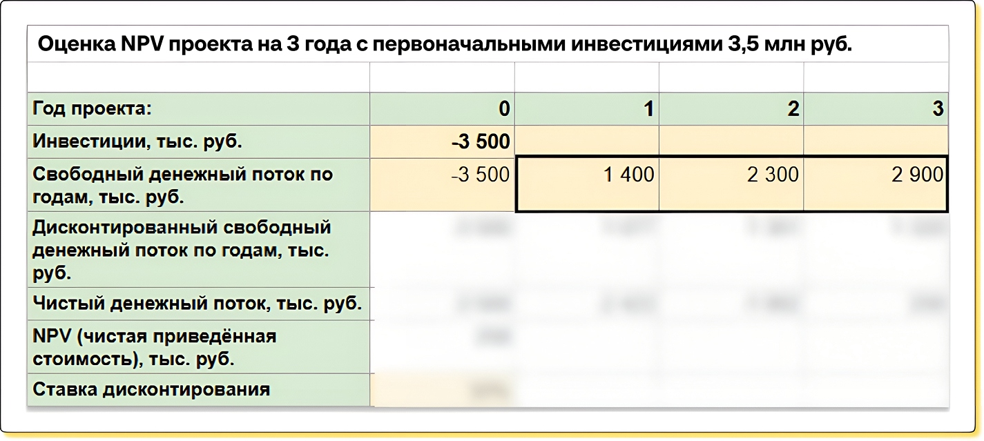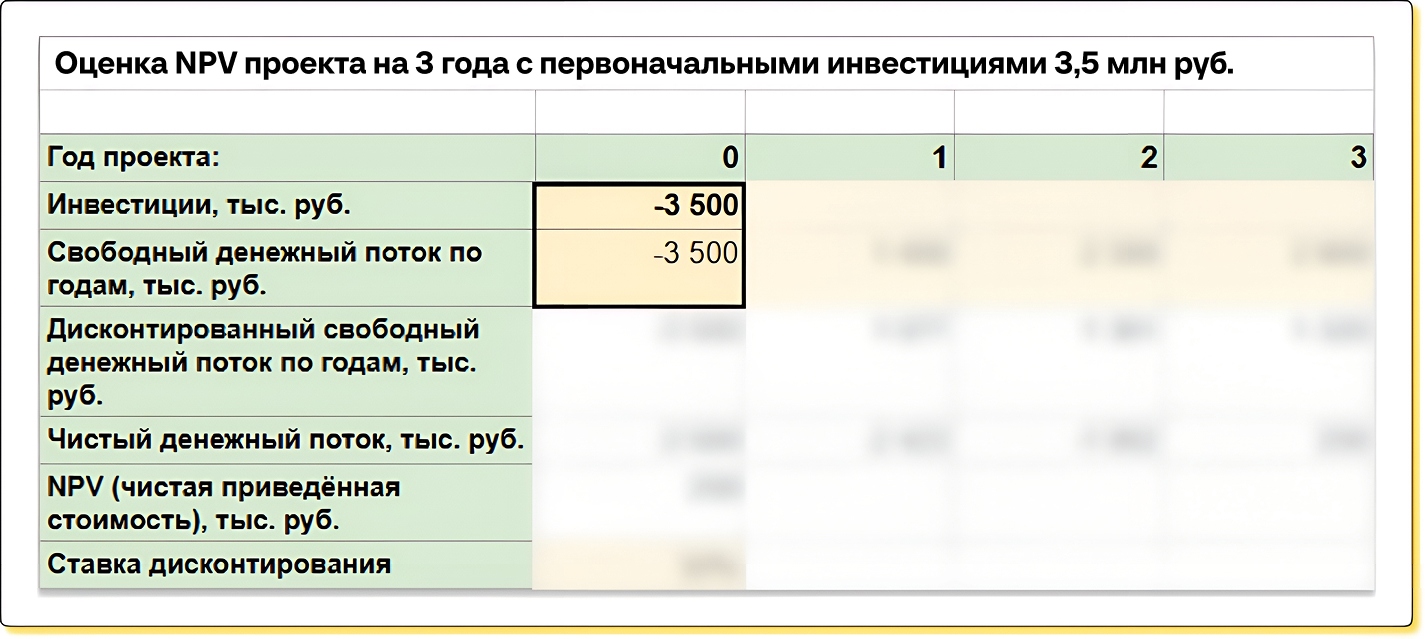 NPV легко подсчитать. При условии, что инвестор понимает примерные доходы проекта по годам — в этом случае для подсчета NPV достаточно вбить нужные данные в Гугл- или Эксель-таблицу и получить результат.