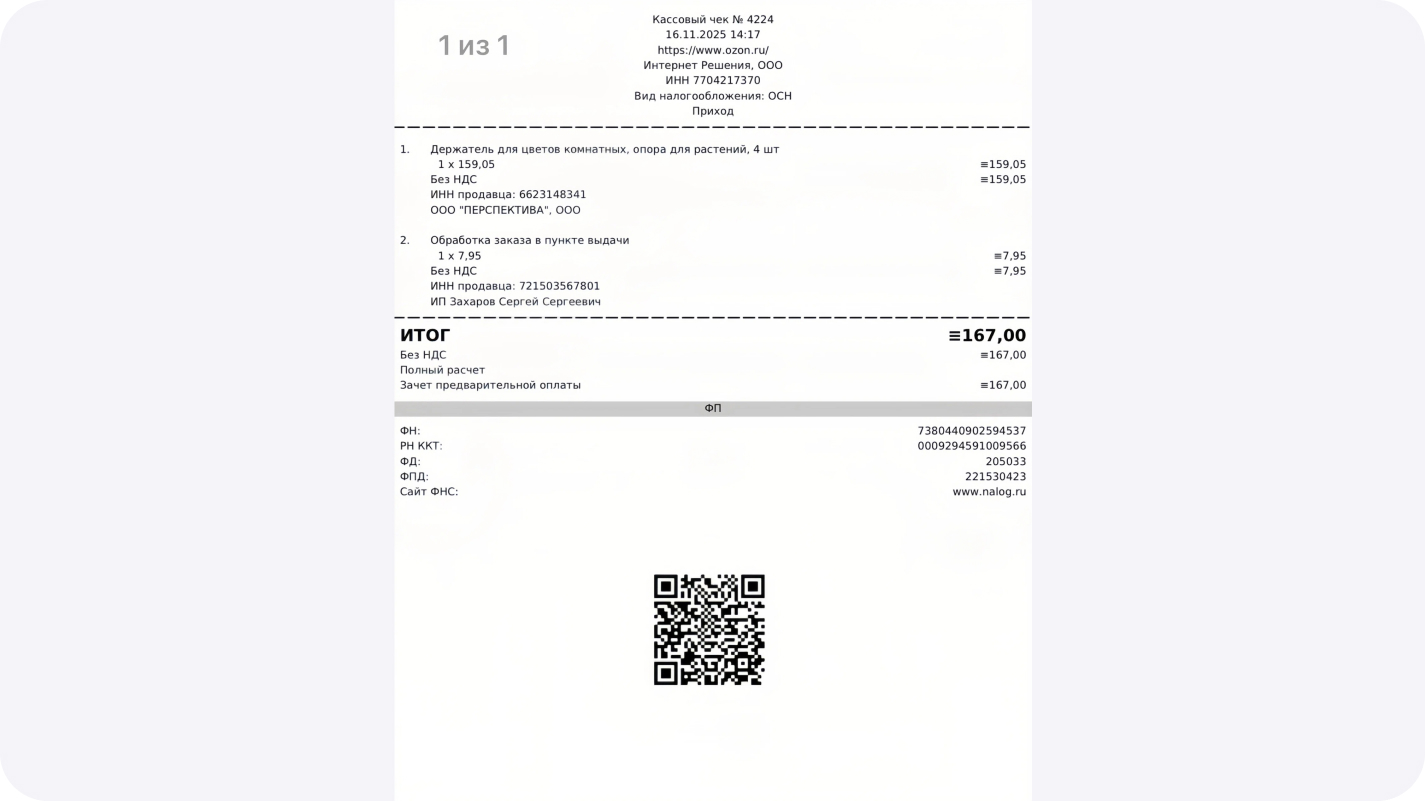 Электронный чек после покупки на Ozon приходит на электронную почту покупателя, указанную в профиле