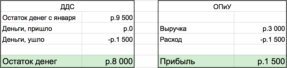 А теперь давайте сведем всё это в одну таблицу, чтобы вы поняли: деньги и прибыль — это не одно и то же.