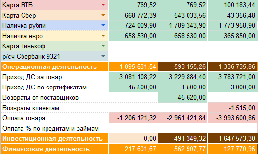- ДДС — откуда пришли деньги, куда ушли, на каких счетах хранятся