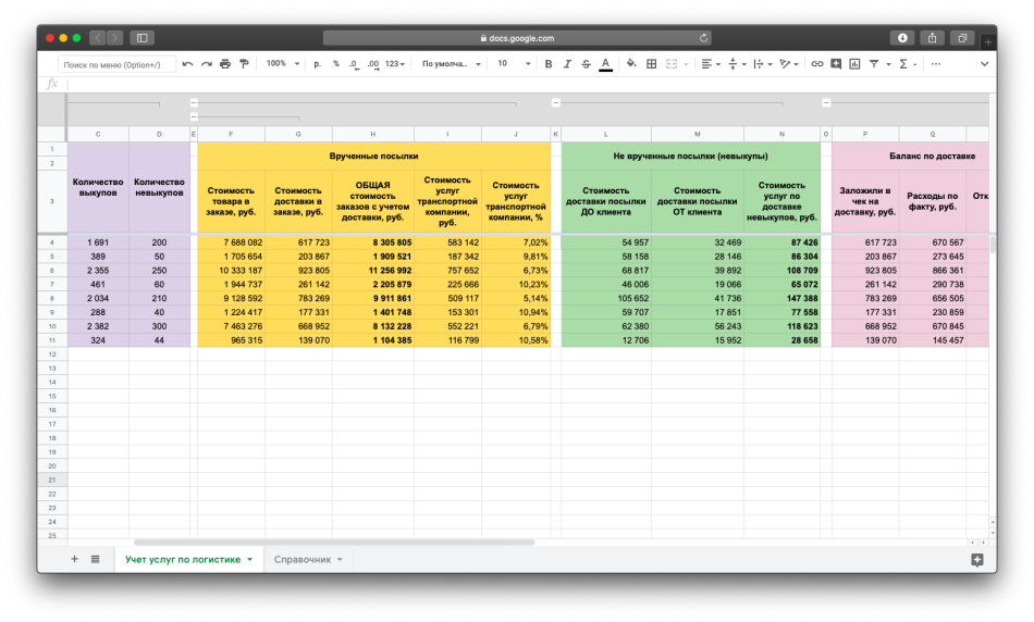Отчет по логистике в «Пароходе» проработал четыре месяца в Гугл-таблицах, после чего его автоматизировали в 1С. Он продолжает приносить пользу, но теперь требует намного меньше трудозатрат.