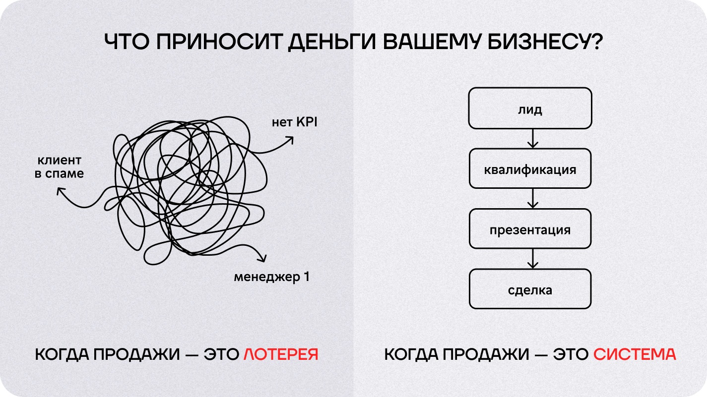 В продажах хаос. Нет четких процессов, клиенты теряются, каждый менеджер работает как хочет.
