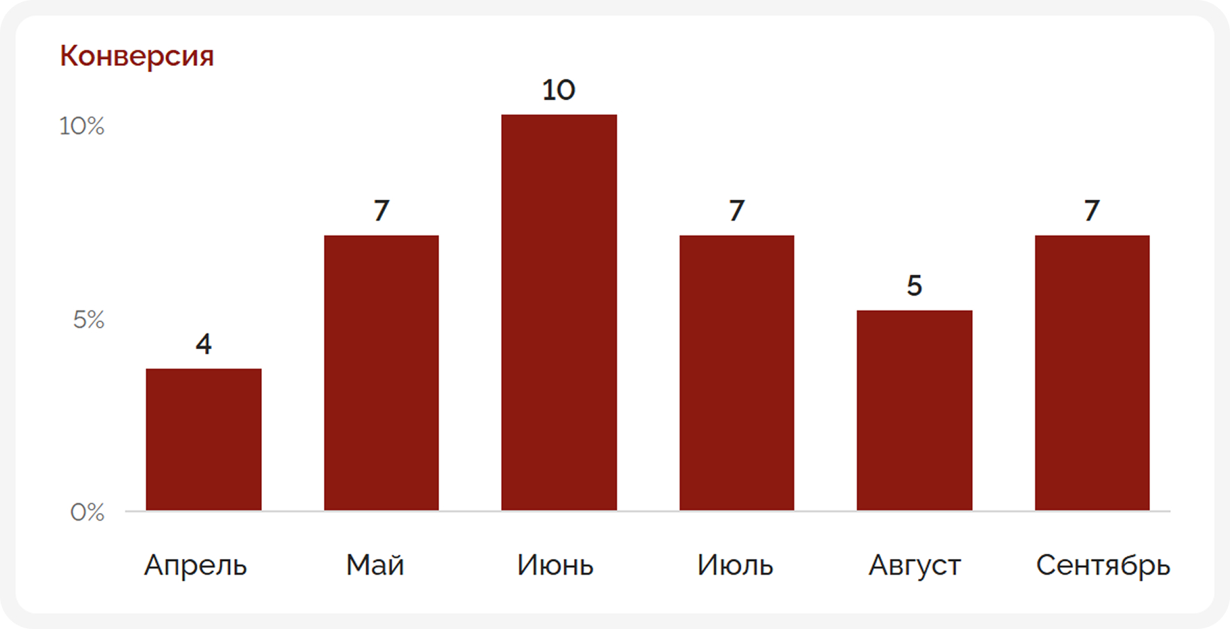 Результат через 6 месяцев: конверсия выросла с 3% до 7% ↓ ↓ ↓