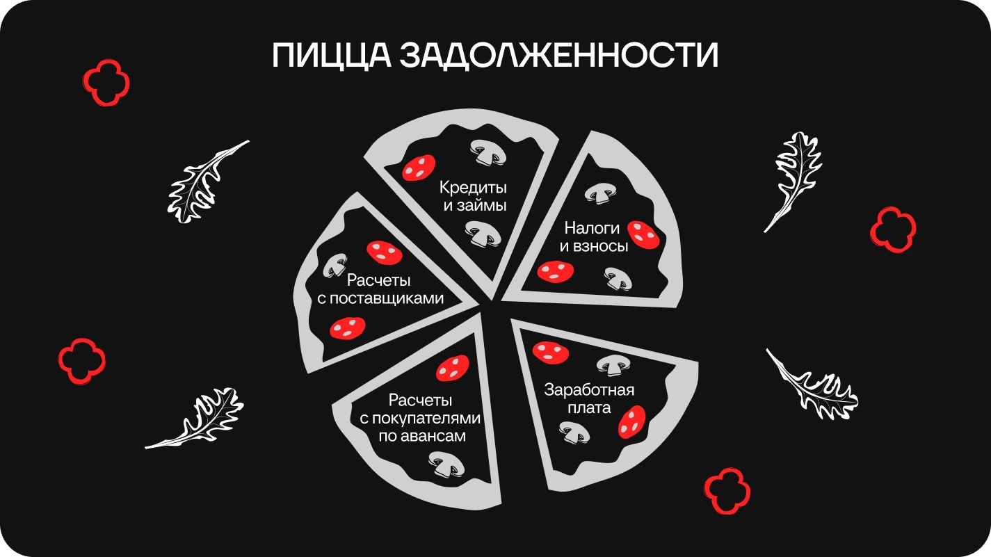 Структура отражает, кому именно вы должны. Условно можно разложить «пиццу задолженности» на такие кусочки ↓