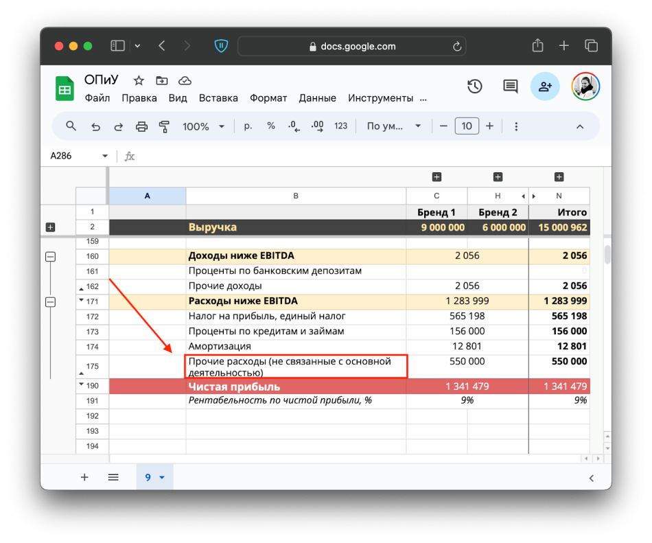 Аналогично и с прочими доходами — они также не связаны с основной деятельностью и вносятся ниже операционной прибыли.