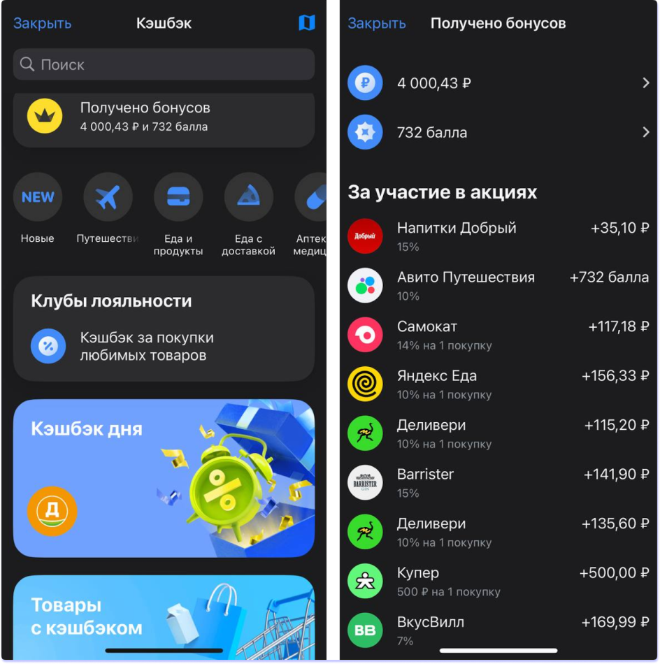 Пример 4. Т-банк предлагает клиентам систему повышенного кэшбэка на отдельные категории и товары от партнеров. За эти покупки клиенты получают в среднем 5% кэшбэка, иногда и 10%, и 20%.
