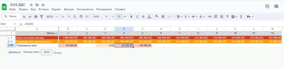 В отчете ДДС указаны фактические суммы расходов на страхование авто