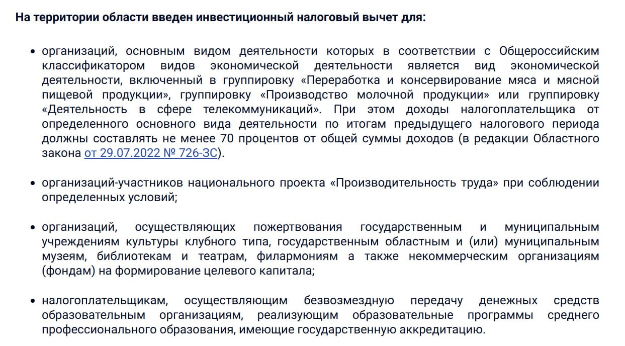 Региональные вычеты к налогу на прибыль установлены властями конкретного региона. Вычет позволяет компаниям уменьшить сумму налога на прибыль, уплачиваемую в региональный бюджет. У каждого региона свои требования к бизнесу, который может претендовать на вычеты.