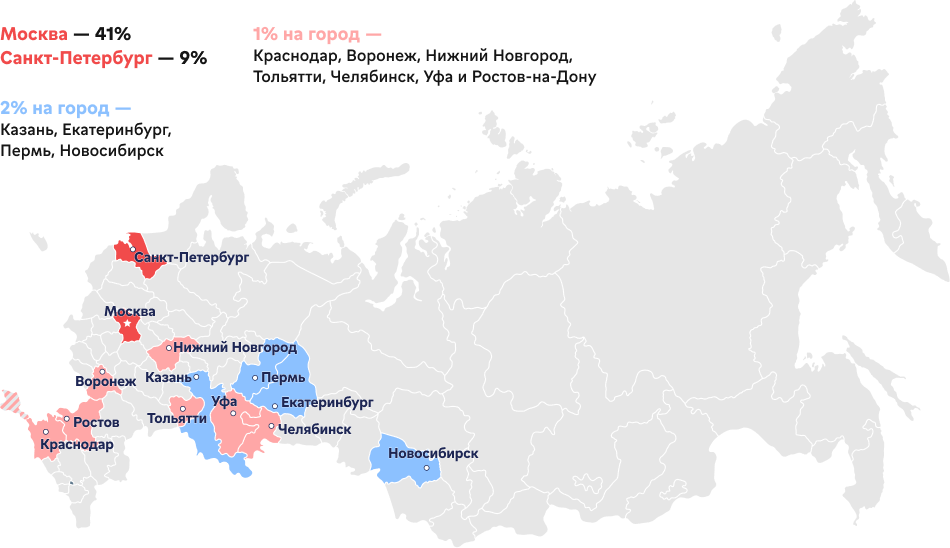 При этом студентов — от 18 до 25 лет — всего 7%, а людей старше 45 лет — 24%. В общем, не удивляйтесь, если ваша мама решит основать стартап. Особенно если она живет в Москве.