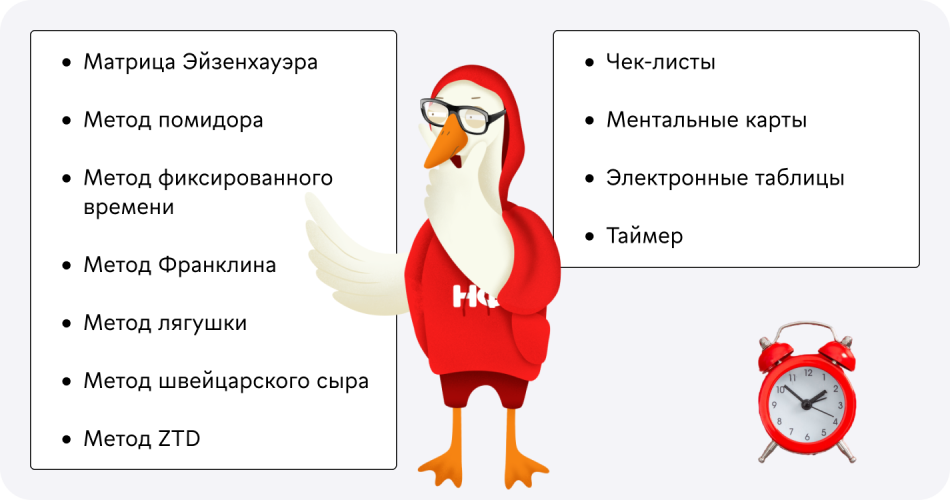 Современные техники тайм-менеджмента богаты на выбор: множество навыков самоорганизации, матрица тайм-менеджмента, работа с помощью циклов (система 25 минут, метод 90 на 30).