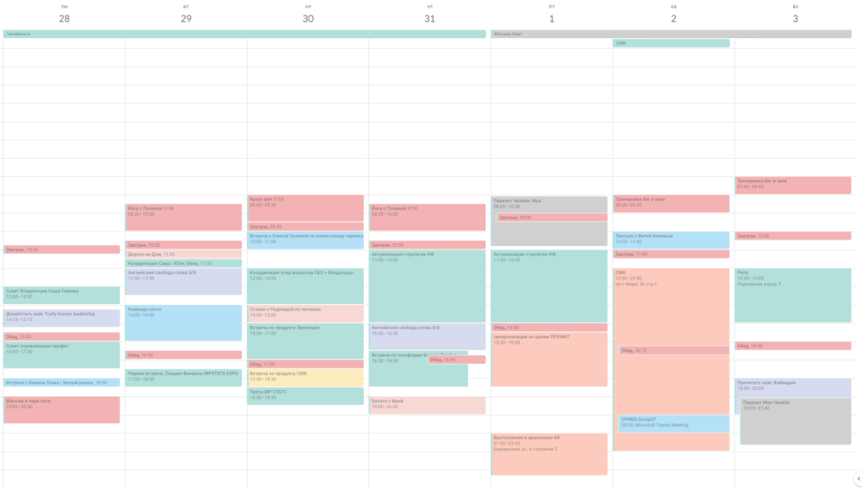 ↑ Так выглядит календарь сооснователя компании Александра Афанасьева.
