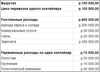 Расчет точки безубыточности: пример