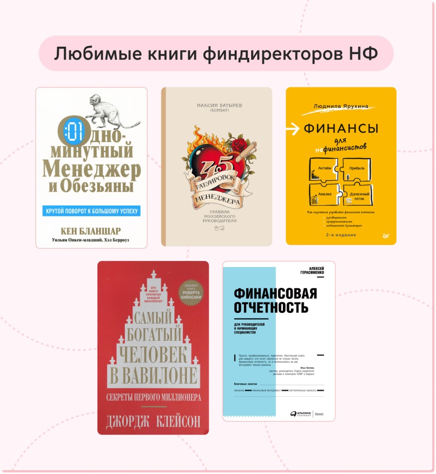 «С книгой «Финансы для нефинансистов» я познакомилась с этой книгой на старте карьеры, когда изучала фондовый рынок. После ее прочтения финансовые отчеты крупных компаний перестали меня пугать, потому что я четко знала, на что нужно смотреть», — Кристина Файзуллина, финдир НФ