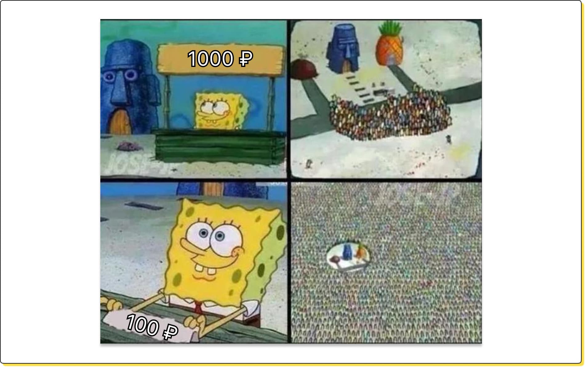 Тестировать стоимость. Это поможет нащупать уровень, при котором трипваер будет доступен для покупки, а его ценность будет выше цены. Например, можно установить цену в 100 ₽ и следить, как реагируют покупатели:
