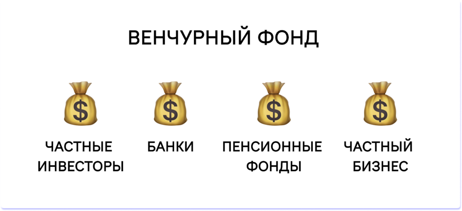 Венчурный фонд — это инвестиционная компания, которая вкладывает деньги в стартапы и зарабатывает на этом.
