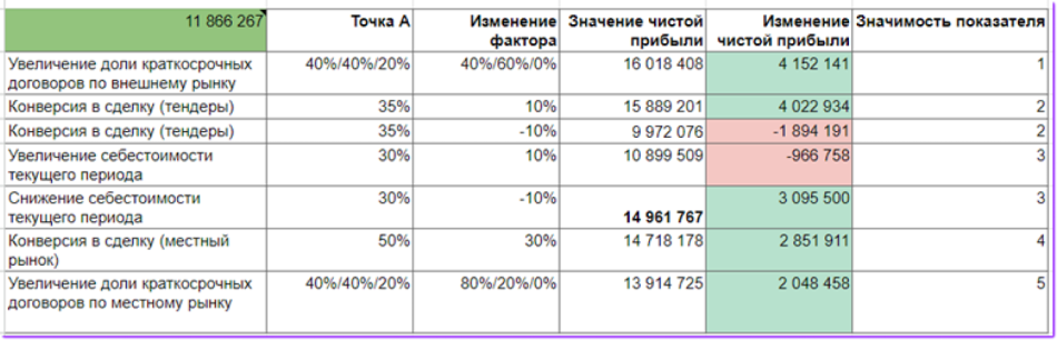 Анализ чувствительности проводят, чтобы понять, какие показатели больше всего влияют на рост и падение чистой прибыли