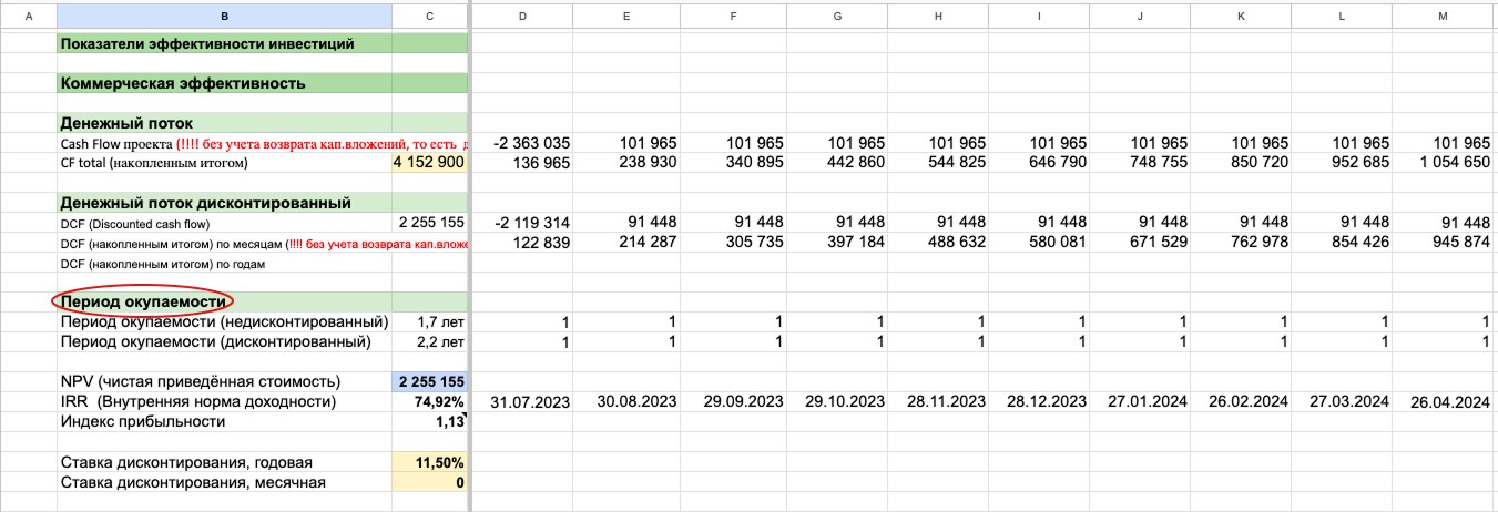 Без финмодели тут не обойтись: нужен четкий расчет ожидаемой прибыли в первый год. Прогнозы должны быть реалистичными, а не идеализированными. На основании этого вы сможете определить, как быстро ваши вложения начнут приносить прибыль и когда бизнес выйдет на самоокупаемость. Если не знаете, с чего начать, скачайте наш шаблон финмодели. Это бесплатно↓