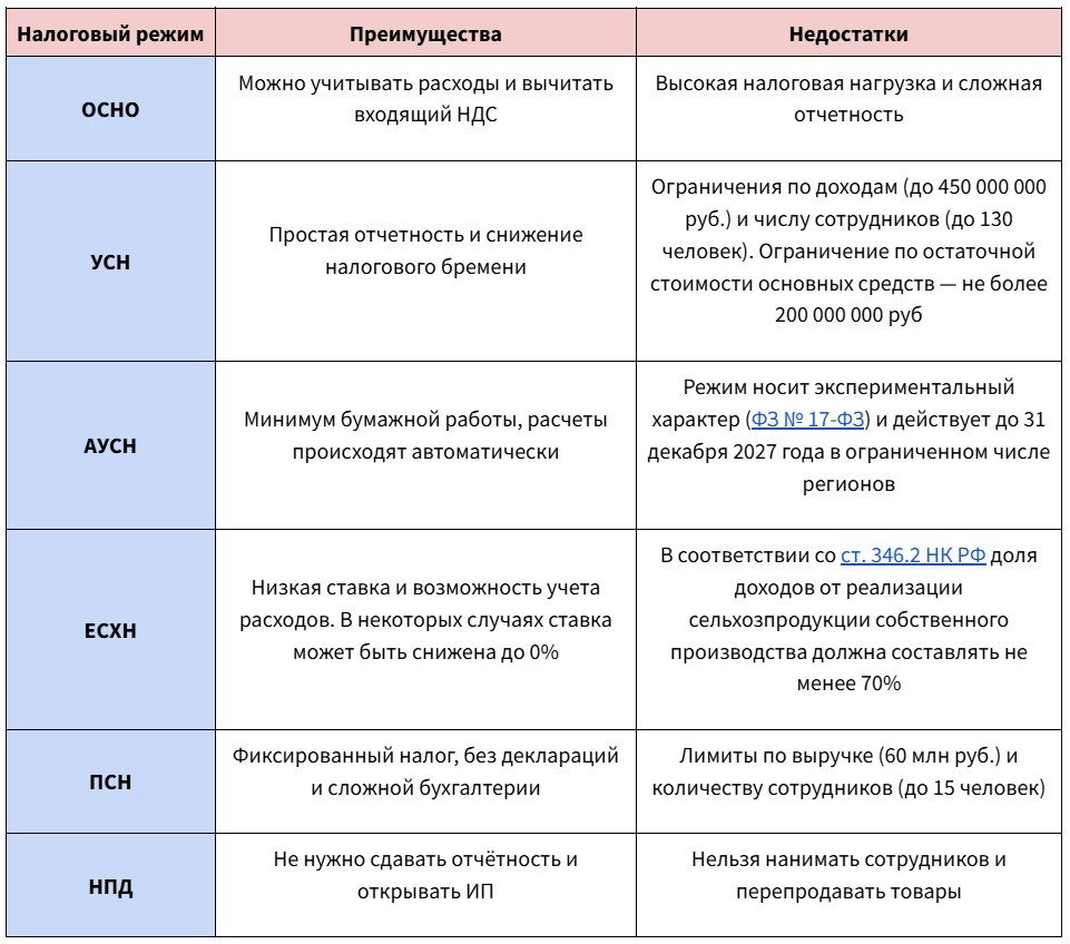 1. ОСНО — общая система налогообложения. Базовый и универсальный вариант для ведения бизнеса в России. Устанавливается автоматически, если предприниматель при регистрации не подал заявление о переходе на другой режим — например, на УСН или ПСН.Такой вариант чаще выбирают компании, работающие с крупными контрагентами, которым нужен НДС в счётах-фактурах.