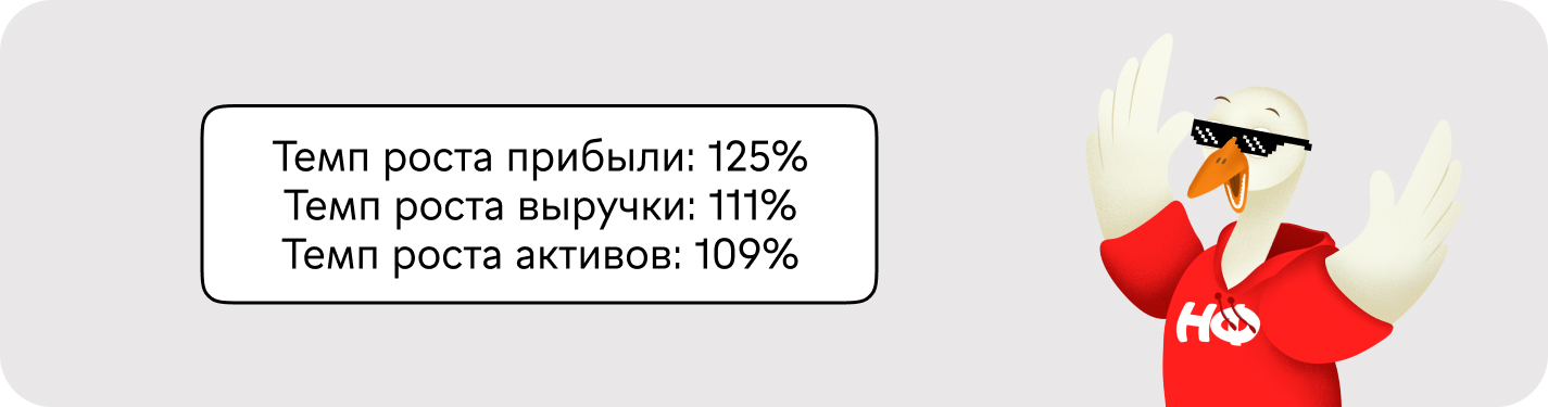 В данном случае темп роста прибыли значительно опережает темпы роста выручки и активов. Компания эффективно управляет затратами и увеличивает рентабельность. Если бы ситуация была противоположной, это могло бы сигнализировать о проблемах в бизнесе.